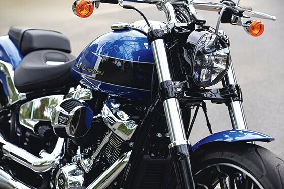 専用のトリプルツリーを採用し、レイク角34度でソフテイルの中で最もフォークが寝た設定となっている。トレール量は145㎜。また、個性的なLEDライトも特徴。