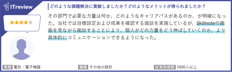 「Skillnote スキルマネジメントシステム」のレビューページ:https://www.itreview.jp/products/skillnote/reviews