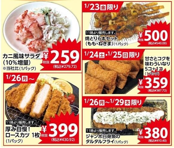 ・ジャンボ白身魚のタツタルフライ1パック→410円