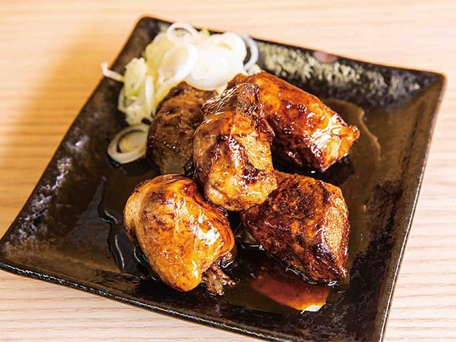 「肉や内臓は有名な問屋さんから卸してもらってます」と店主。新鮮なレバーの弾力を見れば納得。