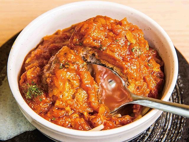 手作りハンバーグ(600円)。粗びき肉の歯応えとうまみをしっかり感じることができる。