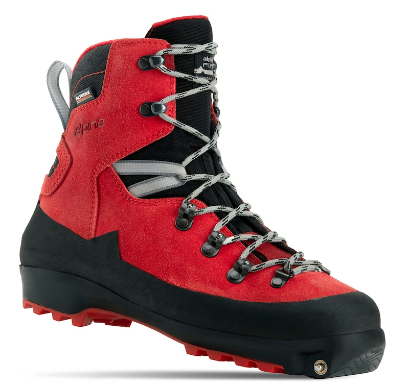 対応ブーツは、BCクロカンブーツのベンチマークとなるalpina(アルピナ)の定番ALASKAシリーズから登場。高いホールド感を持ちつつ、つま先から踵まで覆うラバーの補強により足元の剛性感も実現している。