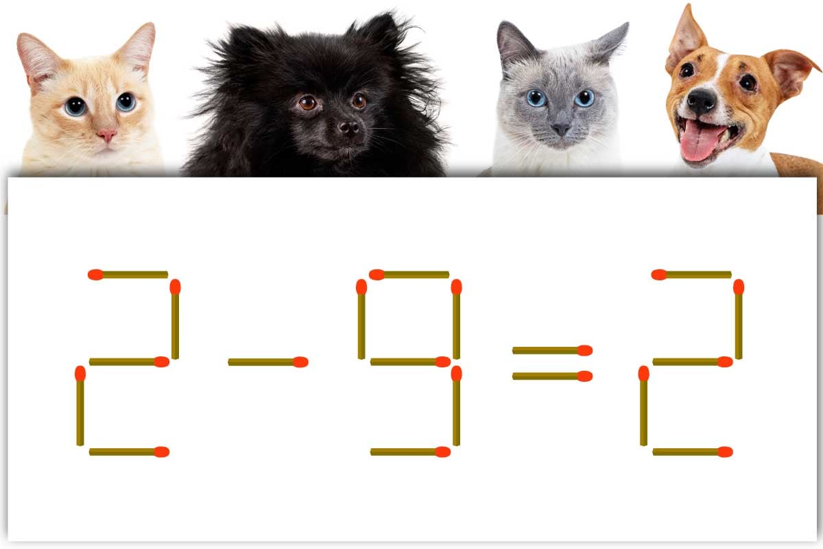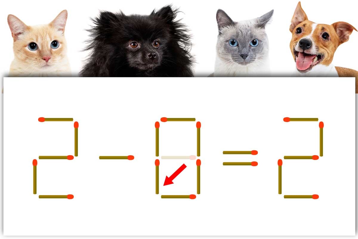 「9」の横マッチ棒を1本移動させて「0」を作り、「2-0=2」にする。※解答は複数ある場合があります。