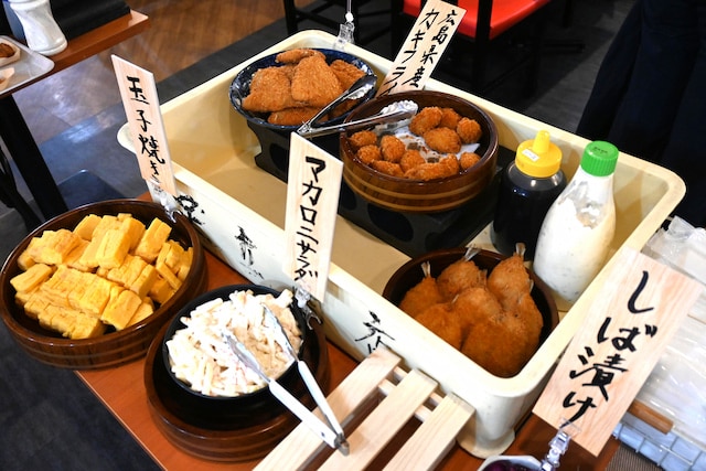 刺身コーナーのほかにも、カキフライやアジフライなど揚げ物が揃っているのも嬉しいポイント。途中で揚げ物やお惣菜を挟むと、食べ放題でも飽きずに楽しめます。