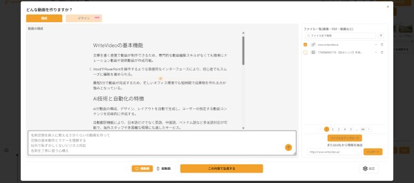 WriteVideoの動画作成画面には、右下に「URLを入力する欄」があります。ここにURLを貼り付けて実行すると、そのページに書かれている文章が取り込まれます。