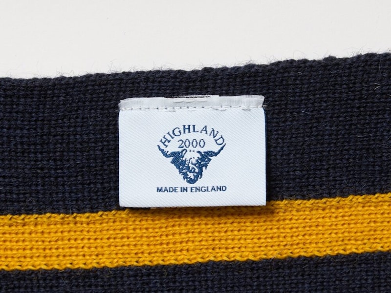 デザインのベースは、ヴィンテージのスクールマフラーに多く見られる、スクールカラーを用いた2色使いのストライプ。紺ブレを思わせる深みのあるネイビーに、アクセントとして効かせたイエローが、トラッドスタイルによく映えます。