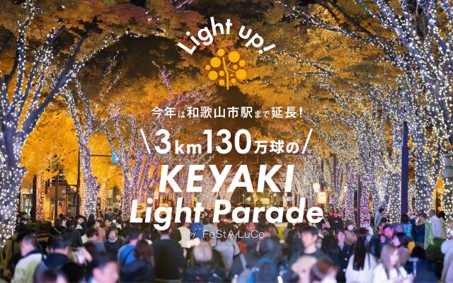 さらに今季は点灯エリアを拡大。JR和歌山駅から和歌山城、そして南海和歌山市駅までの3kmにわたる通りが光に包まれます。