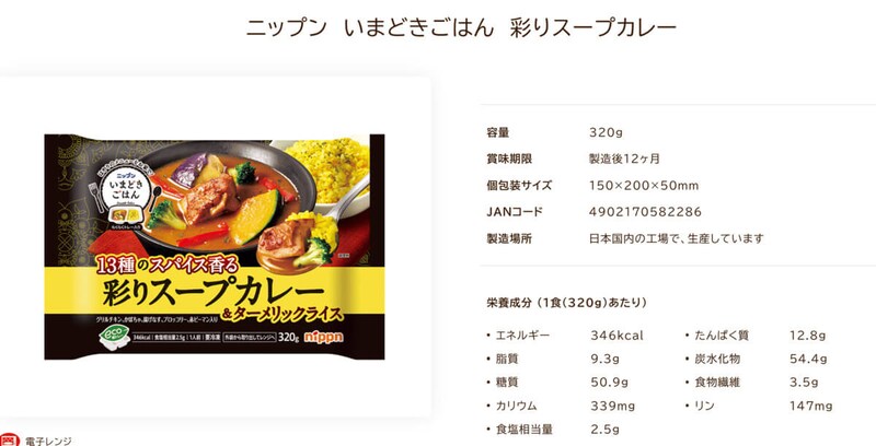 9月24日放送の「ホンマでっか!?TV」(フジテレビ系)で紹介された「ニップン いまどきごはん 彩りスープカレー」が話題です。