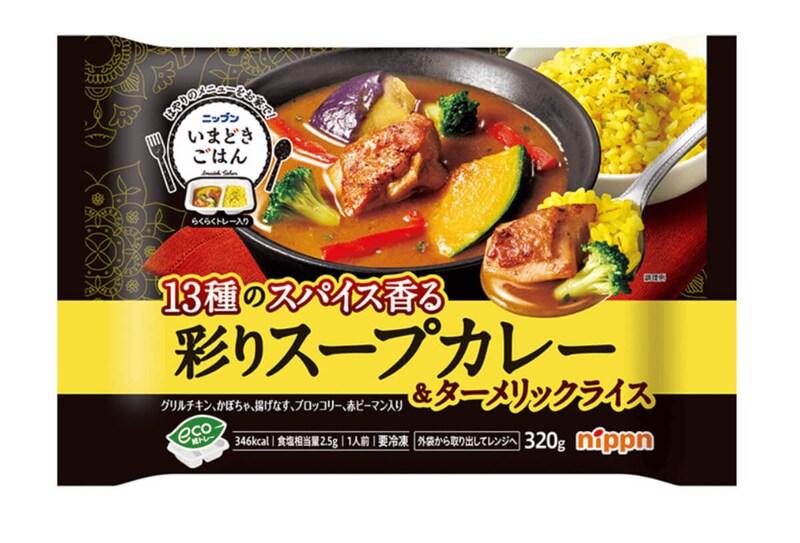 ヘルシー志向の人にも魅力的な「いまどきごはん 彩りスープカレー」、冷凍食品の新たな可能性を感じる商品なのではないでしょうか。