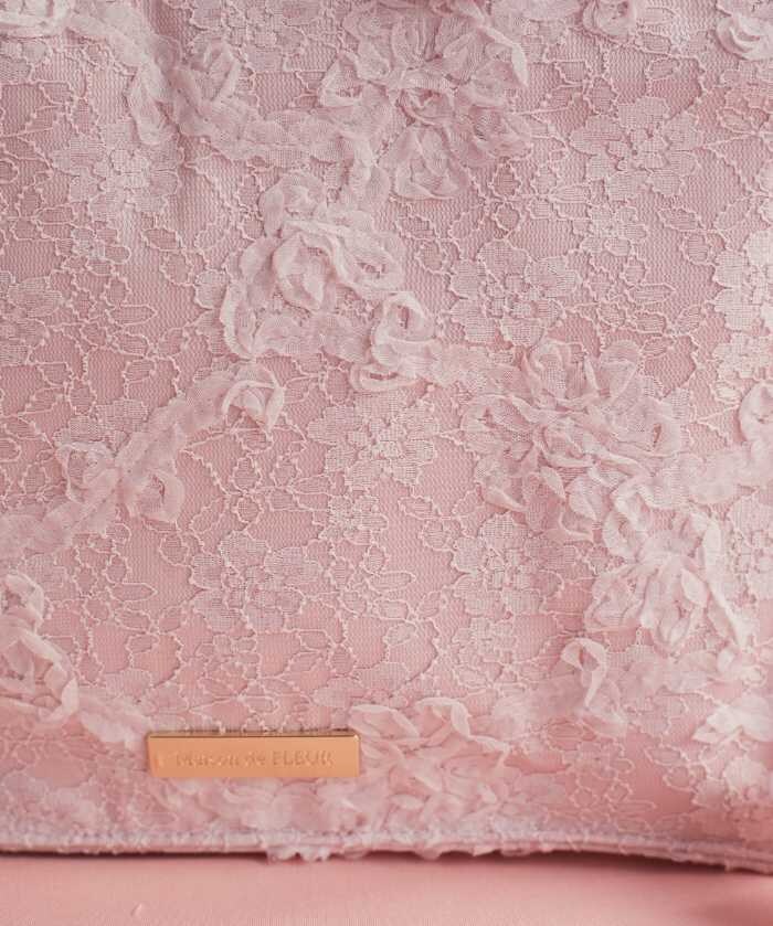 桜リボン2Wayトートバッグには、春風に揺れるような桜とパールのチャームを配置。繊細なレース生地からも、丁寧なものづくりが感じられます。