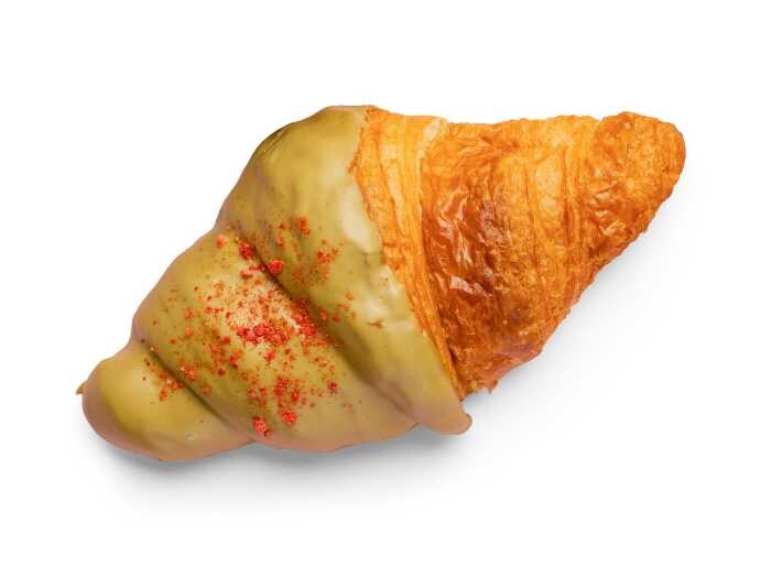 オーブンで表面を香ばしく焼き上げたクロワッサンに、チョコレートをたっぷりコーティングし、見た目も味わいも満足感のある仕上がりです。