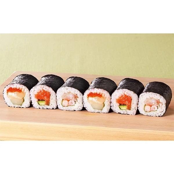 7種類の細巻と5種類の中巻を詰め合わせた、彩りも味のバリエーションも豊かなセット。まぐろやサーモン、ヒレカツなど子どもから大人まで楽しめる内容です。