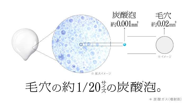 毛穴の約1/20サイズの炭酸※4泡が角層最深部まで浸透し、うるおい・キメ・ツヤ・ハリ・ゴワつき※5といった複合的な肌悩みにアプローチします。