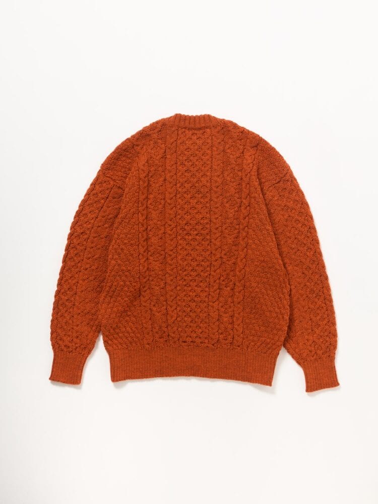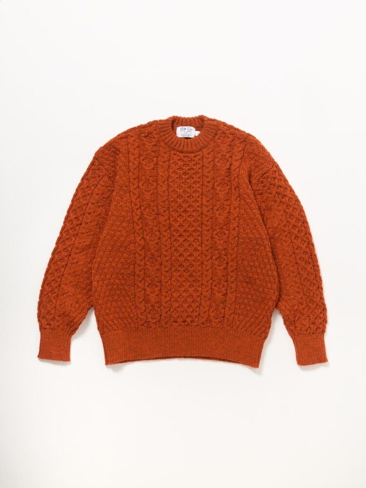 伝統のアランを、2ndだけのオレンジで。1760年創業という長い歴史を持つニットブランド「ケリーウーレンミルズ」。今もなおアイルランドのファクトリーで作られるブランド定番のアランセーターを、ありそうでなかったオレンジカラーで別注しました。