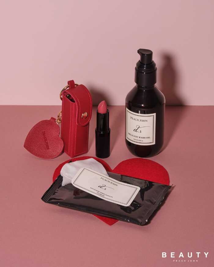 デリケートケアセットはウォッシュオイルとワイプシート、リップチャームでケアもバッチリ。