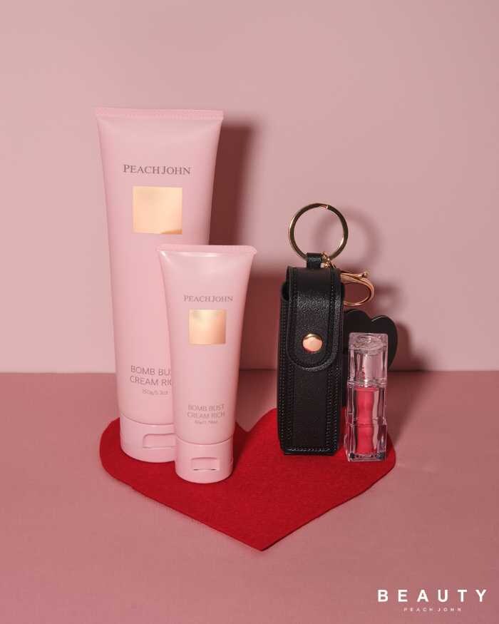 バレンタインギフトを探しているなら、PJ BEAUTYのコフレも要チェック!ボムバストクリームセットは、人気のボムバストクリームとミニサイズ、リップケースチャームのセット。