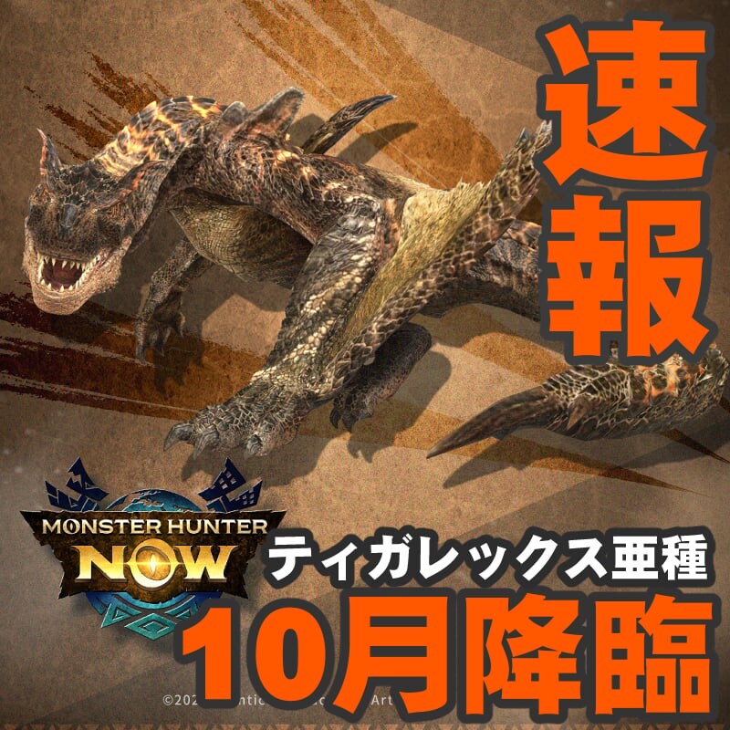 公式X(旧Twitter)によるとティガレックス亜種は10月に開催予定のイベントで登場。