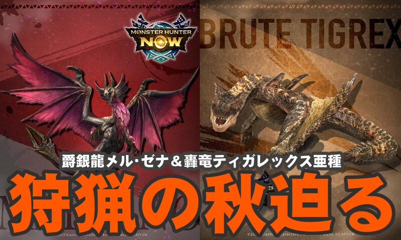2025年9月28日(日)、位置情報ゲーム『モンハンNow』の公式より爵銀龍メル・ゼナとティガレックス亜種の実装が速報として発表された。