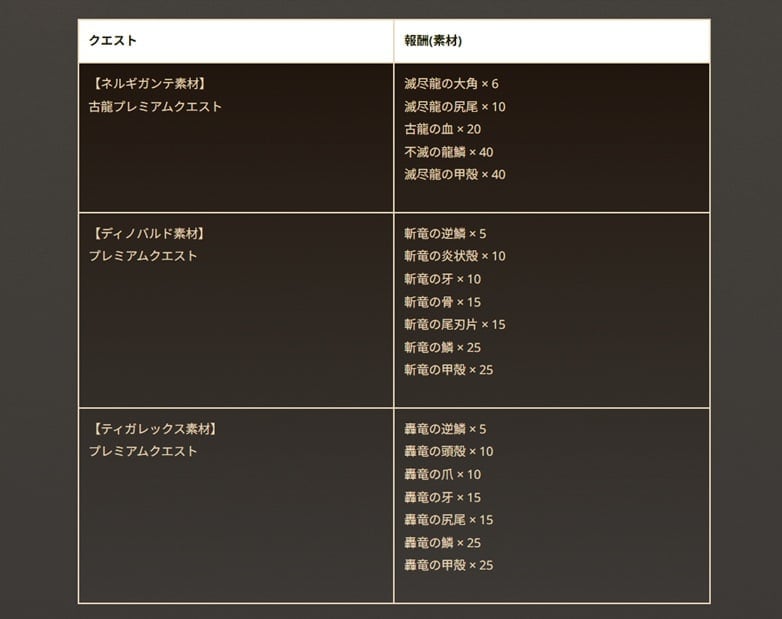 さらに、有料のプレミアムクエストも下記のスケジュールで開催されるので、興味のあるハンターは是非チャレンジしてほしい。