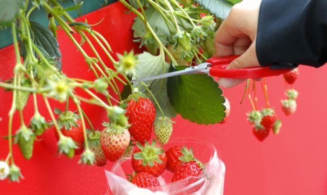 小さいお子さんがいるファミリーや農園まで足を運ぶことが難しい人も、アクセスしやすい京都市内で気軽にいちご狩りを楽しめます。料金は専用パック(大)1,200円、(小)700円です。