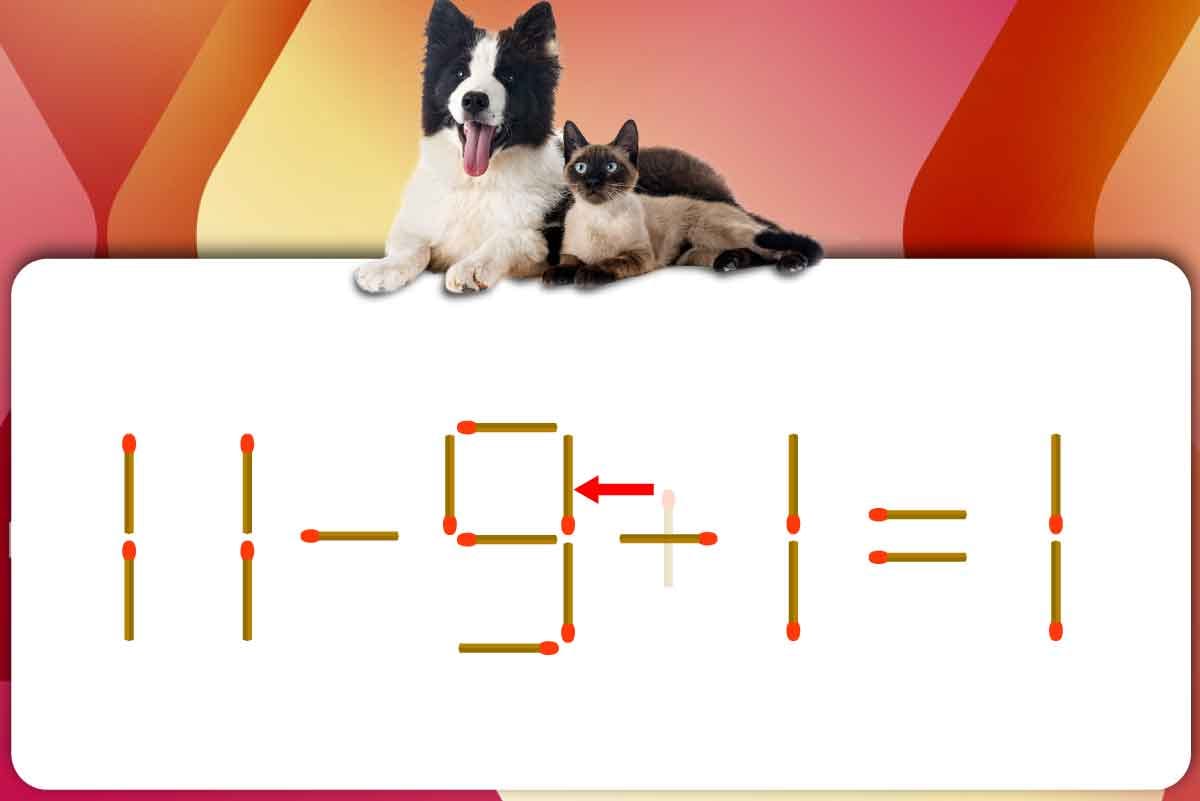 「+」のマッチ棒を1本、「5」に移動させて「9」を作り、「11-9-1=1」にする。※解答は複数ある場合があります。