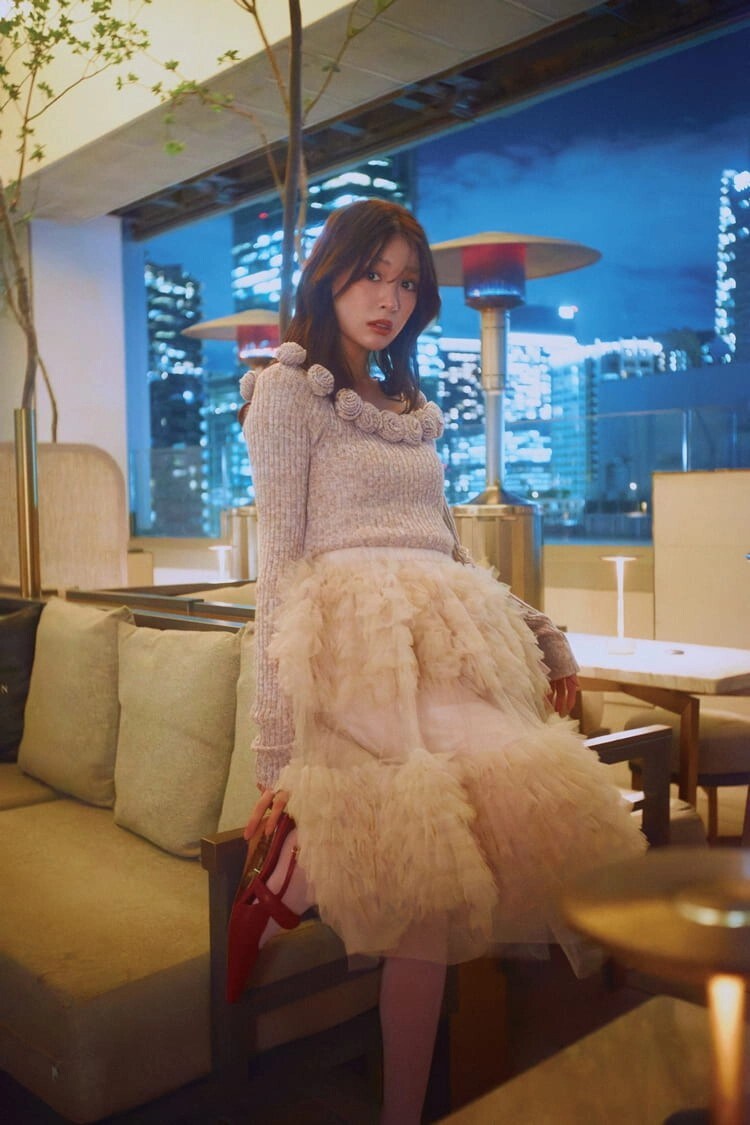 乙女心をくすぐるピンクコーデ。くすみカラーなら盛りに盛ってもこなれ感が生まれる。