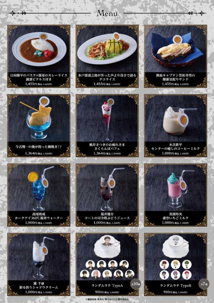 渋谷モディ店では「日向順平のバスケ×部室のカレーライス 誠凛ピクルス付き」(1,600円税込)や「桃井さつきのお疲れさまさくらんぼパフェ」(1,500円税込)など、多彩なフードやスイーツが登場。