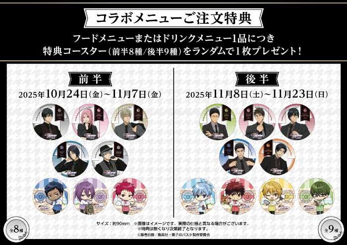 「黒子のバスケ」とChugai Grace Cafeのコラボカフェが、渋谷モディ店と大阪なんばマルイ店にて2025年10月24日から開催されます。キャラクターをイメージしたフードやドリンク、描き下ろしイラストを使った新作グッズ、さらには来店特典や抽選キャンペーンも♡作品の世界に浸れる特別な空間をぜひ体験してみてください。