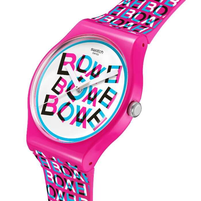 ロマンチストにも現実主義者にも刺さる、Swatchらしいウィットが詰まった一本です。ケースは直径41mmの光沢あるピンクのバイオソース素材。