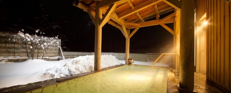 八幡平リゾート パノラマ&下倉スキー場から立ち寄るのに便利な新安比温泉。2つの源泉があり、大浴場の元湯は通称「金の湯」といわれ、淡黄褐色。もう一つは「銀の湯」で金の湯より少し薄い淡黄褐色。