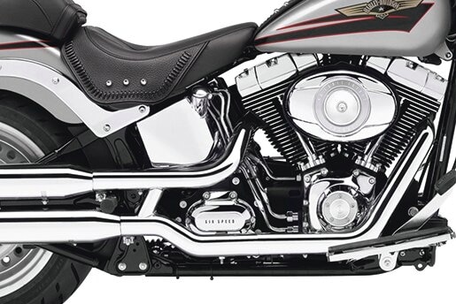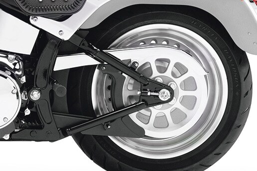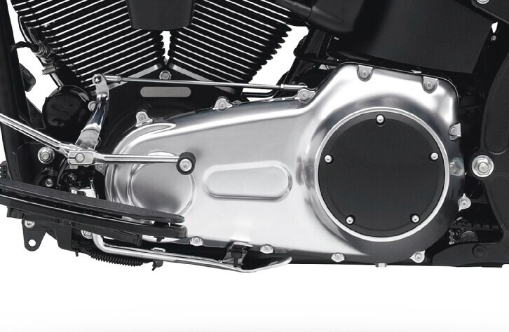 新型ソフテイルの開発にあたって、世界中のユーザーから「ハーレーに求めるもの」をリサーチしたところ、アグレッシブな走りや軽くて扱いやすい車体など、従来のハーレーにはなかった要素を求める声がかなり多かったことがわかった。そんな要望を満たすために現代のソフテイルは開発されたという。そのため、あえてリジッドフレーム由来のシルエットに固執しなかったというワケだ。いかんせん旧型のソフテイルでワインディングを走ればあっという間にマフラーなどをガリッと擦ってしまったが、現行型ではバンク角を深くするためのあらゆる取り組みが行われたのである。