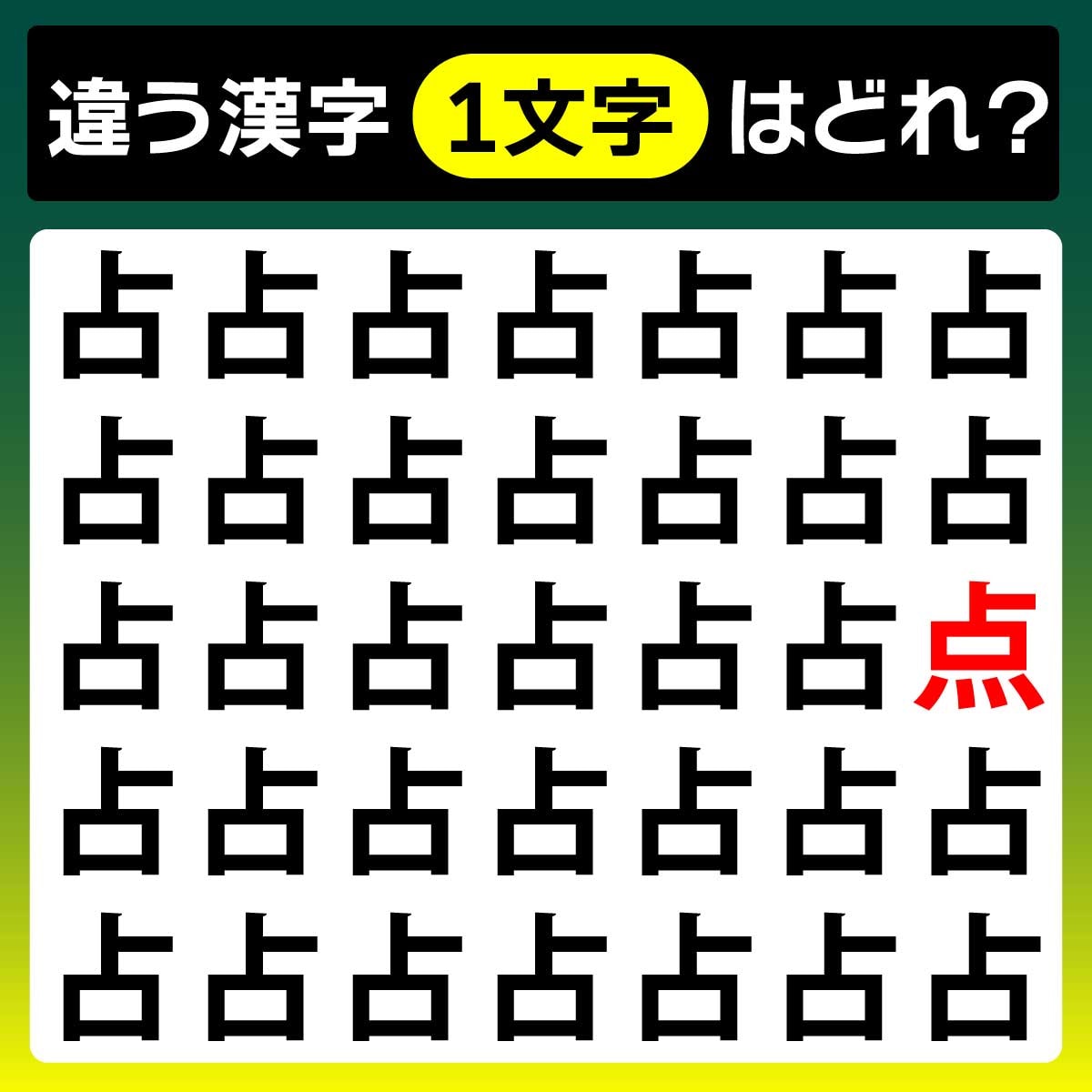 違う漢字は、上から3列目、1番右の文字。