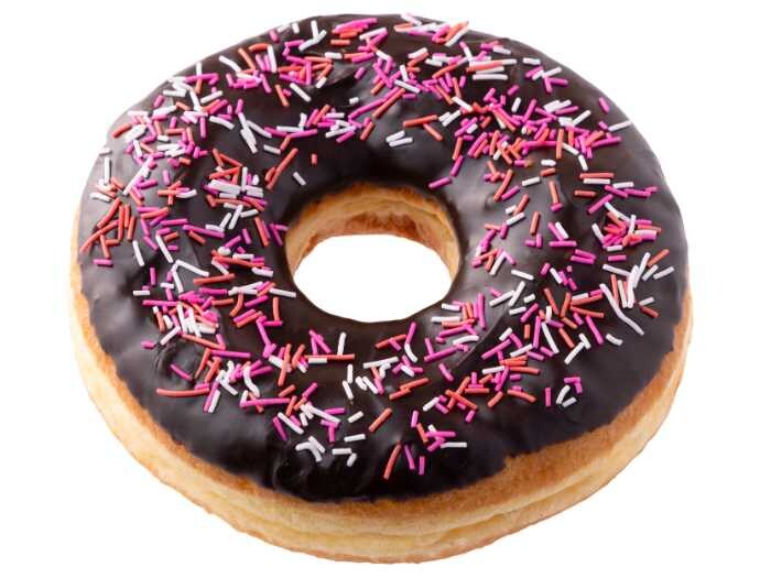 濃厚な甘さのチョコアイシングをたっぷりコーティングし、赤・ピンク・白のスプリンクルをトッピングした華やかな仕上がりです。