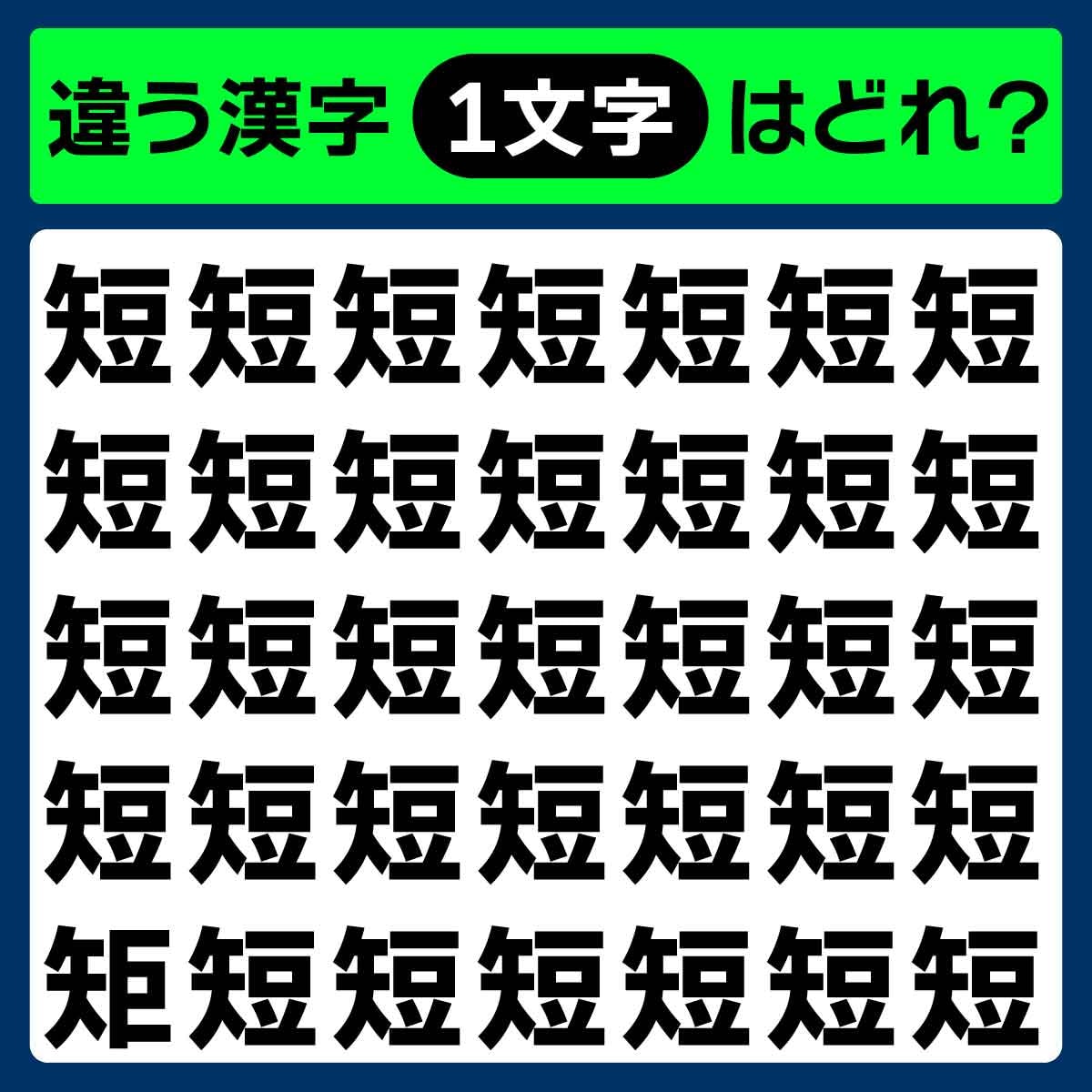 毎日配信中「毎日脳トレ」の時間です! 本日のクイズは「漢字のまちがい探し」に挑戦♪ 同じ漢字が並んでいるように見えますが、実は1つだけ違う漢字が……。よ~く探してみてください!
