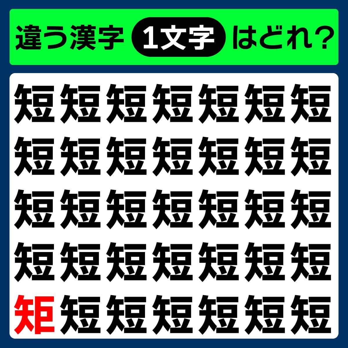 違う漢字は、1番下、1番左の文字でした!