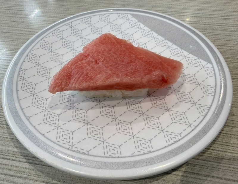 みなみまぐろの大トロ、脂がとろけてなんとも美味。100円は破格かと思われる。