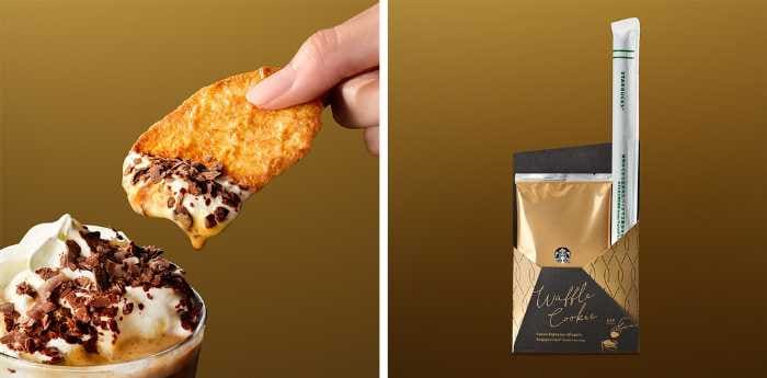 この一杯の楽しみ方として提案されているのが、別添えのワッフルクッキーをディップして味わうスタイル。