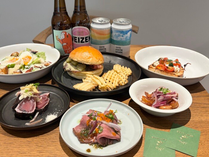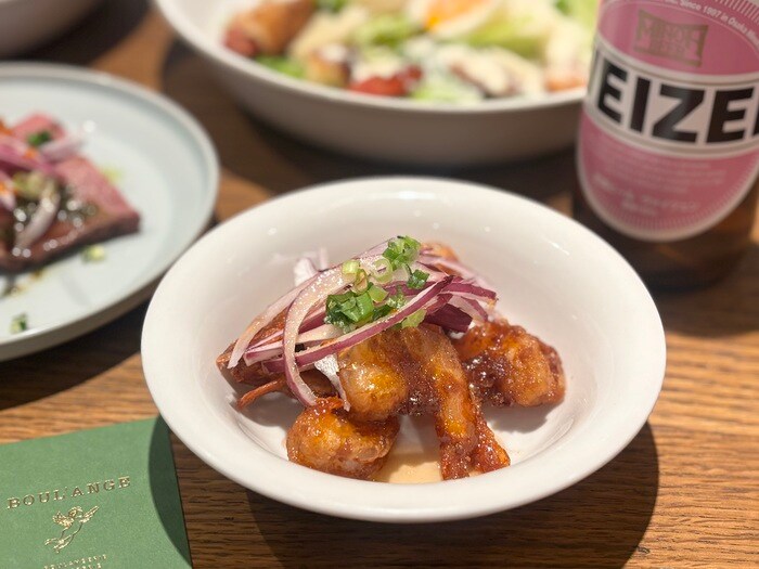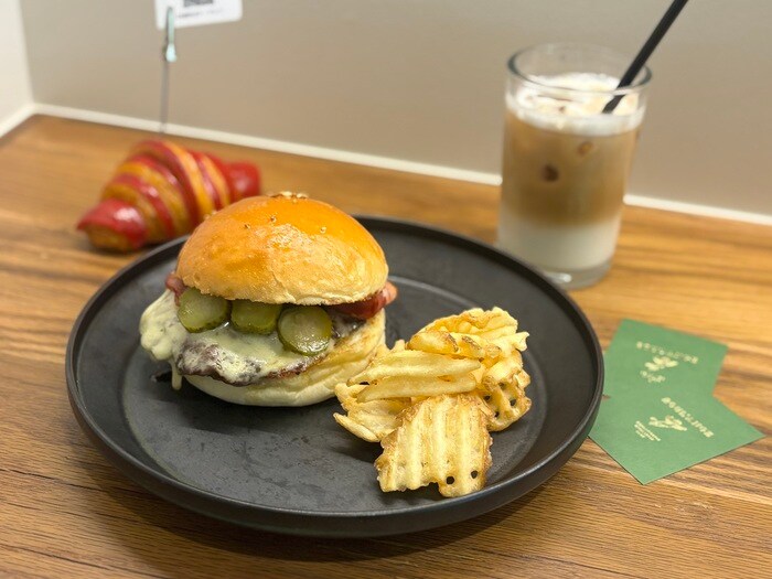休日のお楽しみは昼飲み。前菜をはじめ、ハンバーガーなどの店舗限定のメニューもあるので、パリジェンヌ気分で”パン飲み”をお楽しみいただけます。