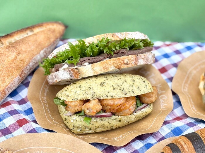 アジアンテイストな「チャバタサンドスイートチリシュリンプ」。フレッシュなお野菜とローストビーフをサンドした「サワードゥサンド ローストビーフ」。