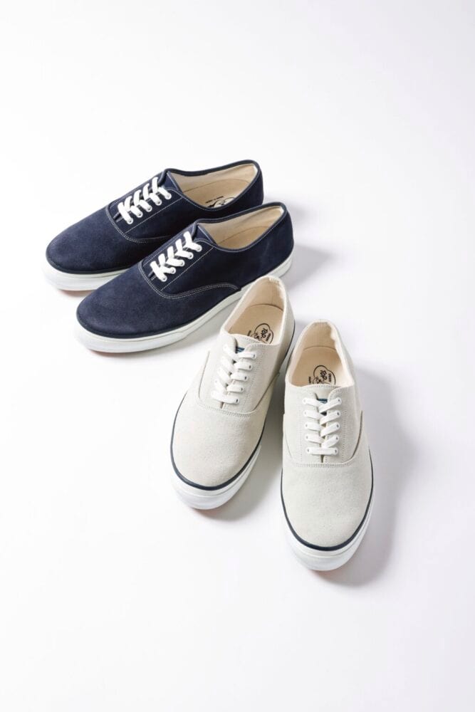 ヒールには富士山を組み込んだロゴを配した限定仕様で、日本のクラフツマンシップとアメリカの老舗ブランドの融合を感じさせる仕上がり。シンプルでありながら存在感を放ち、その背景を知ったうえで履けば、ただのスニーカー以上の価値を実感できること間違い無しです。海辺やデッキはもちろん、都会のスタイルにもすんなり馴染む1足。90年の歴史を刻んできたブランドが、日本の感性をまとった瞬間に立ち会えるのは、ちょっとしたロマンですね。