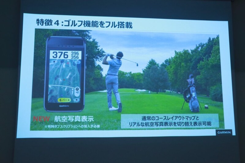 また、有料サブスクリプション「Garmin Golf Membership」に加入することで、コースレイアウトをリアルに再現する新機能「航空写真表示」を利用することが可能となっています。