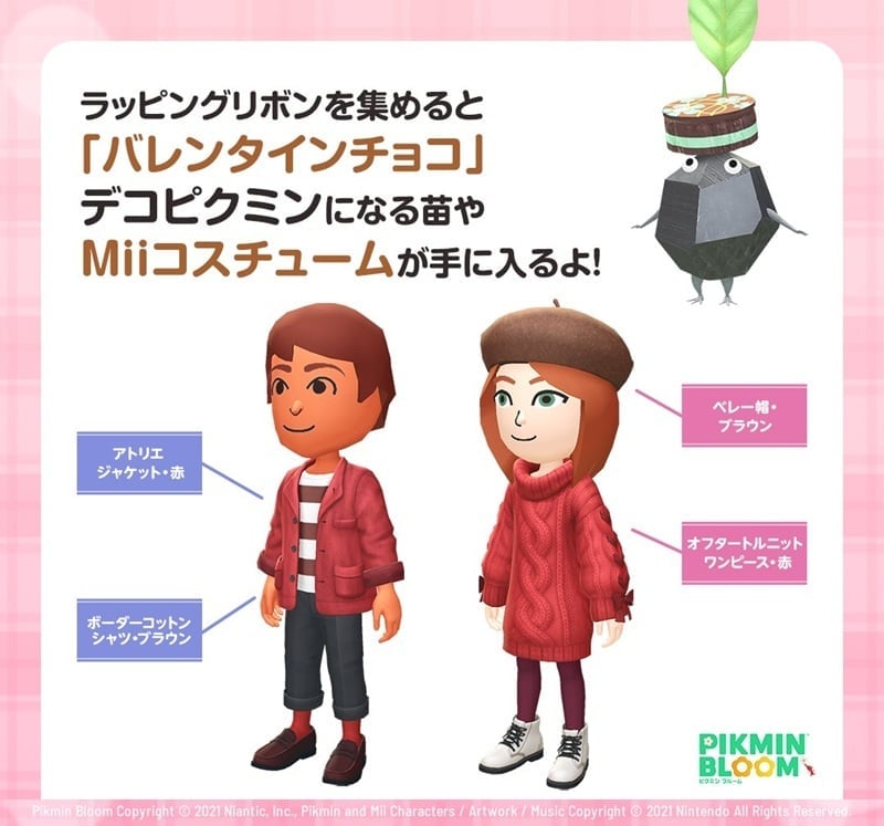 そして、限定Miiコスチュームが狙える特別なお題からは、過去に登場した“バレンタインチョコ”を身に付けたデコピクミンも復刻。