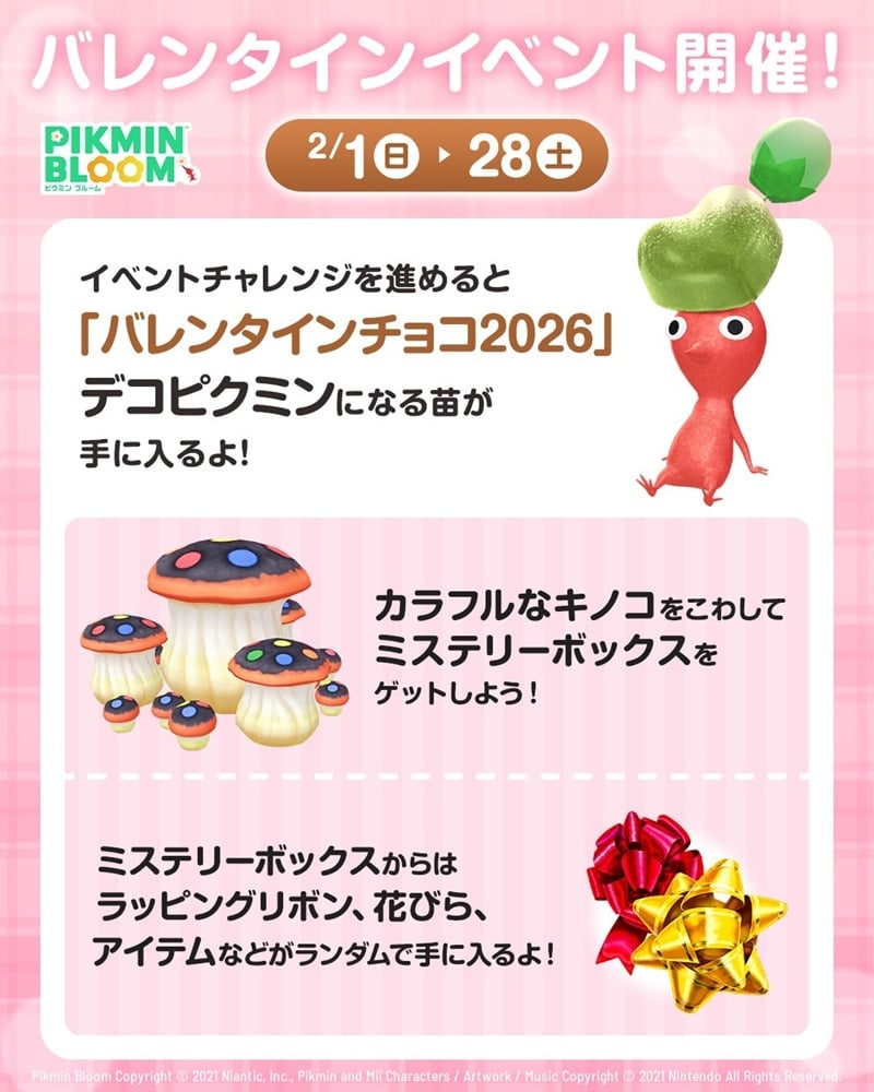 今回紹介した“バレンタインチョコ2026”や“旧正月の飾り:金”のデコピクミンを含む2月のイベントに関する詳細は下記の公式アナウンスをチェックしてほしい。