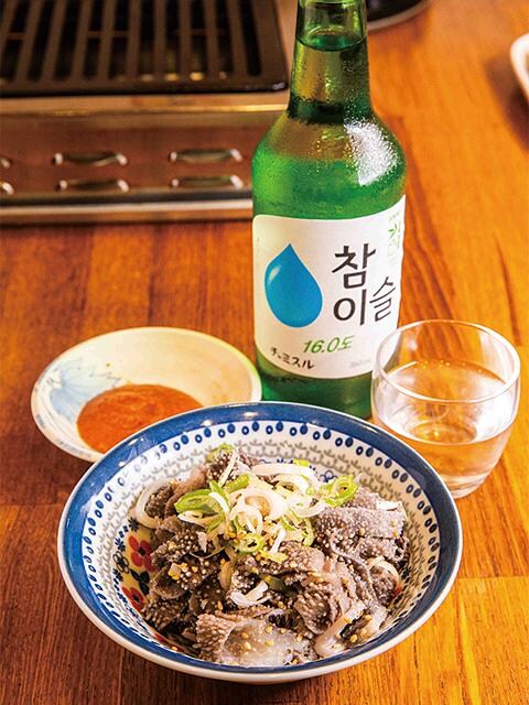 湯引きしたセンマイ刺し(900円)を自家製の酢みそで食べる。新鮮ゆえコリッとした歯応えがたまらない。