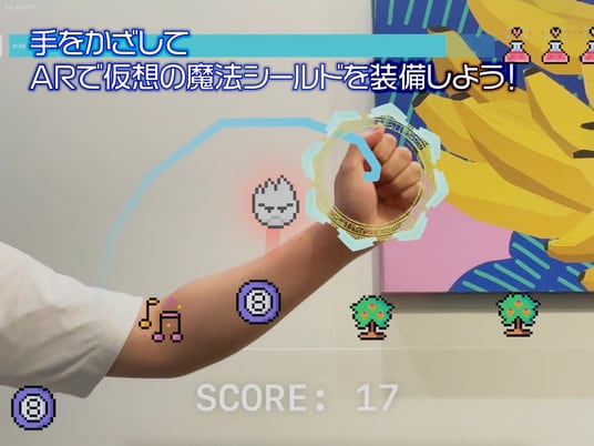 手をかざすだけで金色のバーチャルリングが手首に出現。オンデバイスAIが手の位置を追跡し、絵文字をキャッチしてスコアを競う「Pixel Ninja」。