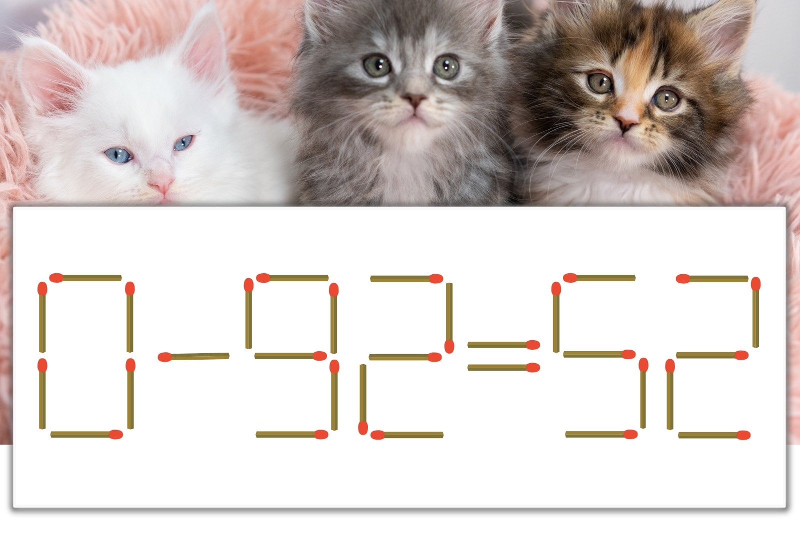 「9」を別の数字に変化させると答えが導き出せます。「9」のマッチ棒を1本移動して、「-」を「+」にしてみましょう。すると、「0+52=52」が成立します。