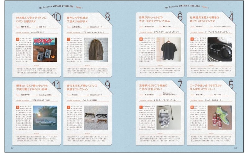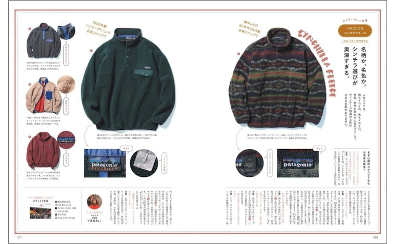 さらに、パタゴニア、リーバイス、チャンピオン、エル・エル・ビーンといった古着店の定番ブランドから、ファイヤーキングのマグ、英国家具などの古家具・雑貨まで、ヴィンテージショップ取材による“失敗しない買い方指南”を展開。よく耳にするヴィンテージ用語の解説も含まれており、これからヴィンテージに挑戦したい人にも分かりやすい内容だ。