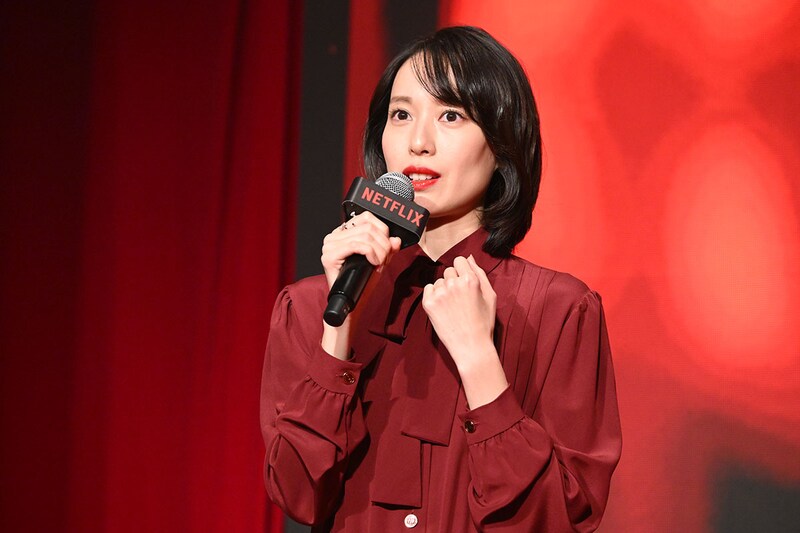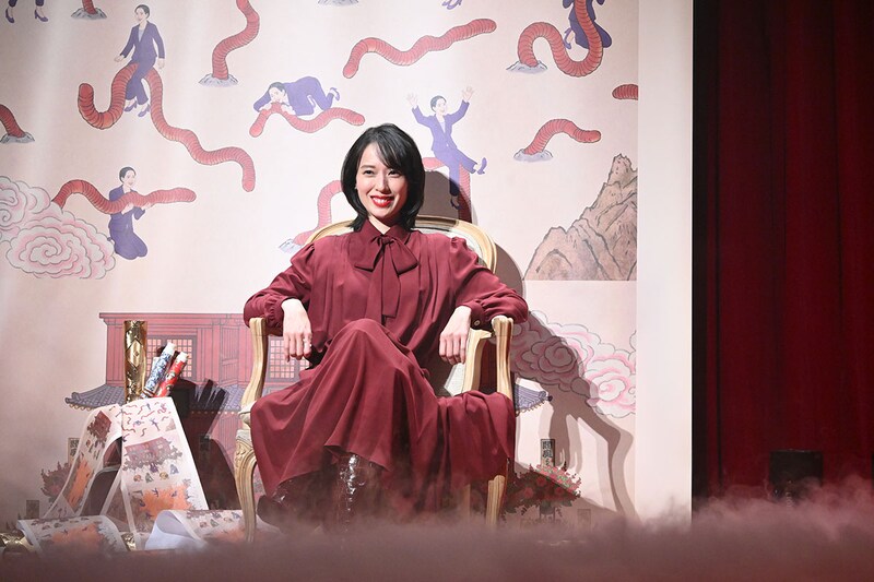 続いて【シリーズ】パートには、「地獄に堕ちるわよ」の主人公・細木数子を演じた戸田恵梨香、瀧本智行監督、エグゼクティブ・プロデューサーを務めるNetflixコンテンツ部門・岡野真紀子の3人が登壇。冒頭では、本作の音楽を担当したピアニスト・作曲家の稲本響による、蛇笛を用いたメインテーマ曲に合わせて、戸田演じる細木数子がお札を燃やす映像と地獄絵図のイラストがスクリーンに映し出される。続いて、本編の名台詞「あんた、地獄に堕ちるわよ」が響き渡り、おどろおどろしい空気の中、戸田、瀧本監督、岡野プロデューサーがステージに登場。