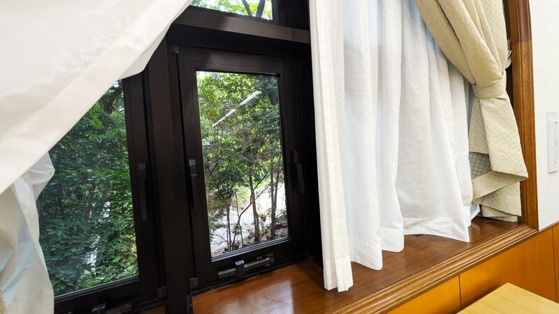 大きなアーチ型の窓の向こうには、緑がいっぱいに広がり、自然を眺めながらゆったり過ごせます。