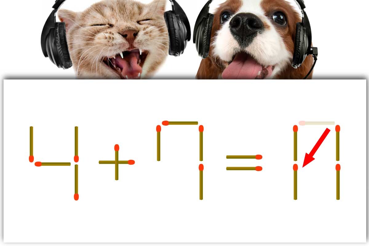 「7」の横マッチ棒を1本移動させて「11」を作り、「4+7=11」にする。※解答は複数ある場合があります。